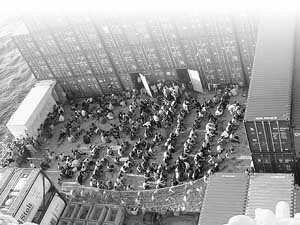 Flüchtlinge auf dem norwegischen Containerschiff "Tampa" vor der australischen Küste.